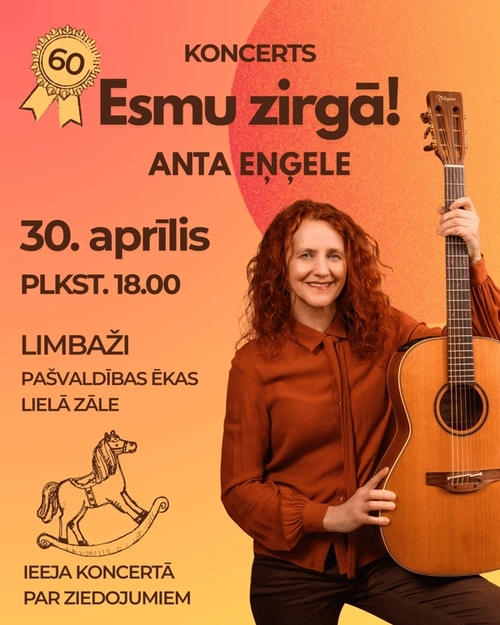 30. aprīlī plkst. 18.00 Limbažu novada pašvaldības lielajā zālē norisināsies Antas Eņģeles koncerts "Esmu zirgā"! Ieeja par ziedojumiem.