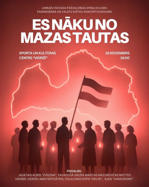 Aicinām visus limbažniekus un pilsētas viesus 18. novembrī plkst. 16.00 pulcēties pie Mazezera, lai kopīgi veidotu īpašu gaismas zīmējumu - Latvijas kontūru no svecītēm.