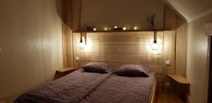 Im Obergeschoss: 3 Schlafzimmer mit Betten (7 Schlafplätze) und 2 zusätzliche Schlafplätze auf Matratzen.