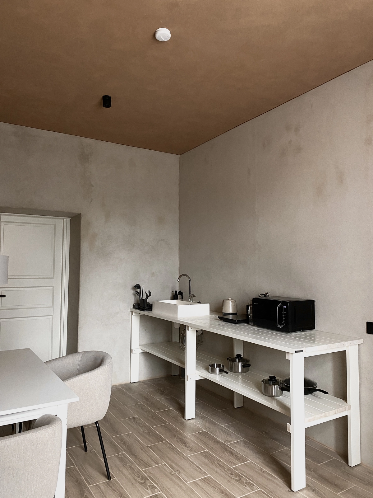 The design of Bunte House has been carefully crafted, blending historical and natural materials with modern interior elements to create a unique and welcoming atmosphere.