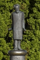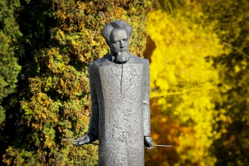 Muistomerkin tekijät ovat kuvanveistäjät Juris Rapa ja Zigrīda Rapa. Patsas kuvaa Baumaņu Kārlisia juuri hymnin johtamisen jälkeen.