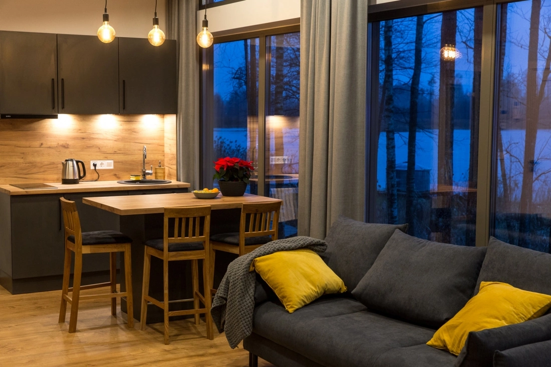 Talo on modernisti sisustettu ja täydellinen romanttiseen lomaan: