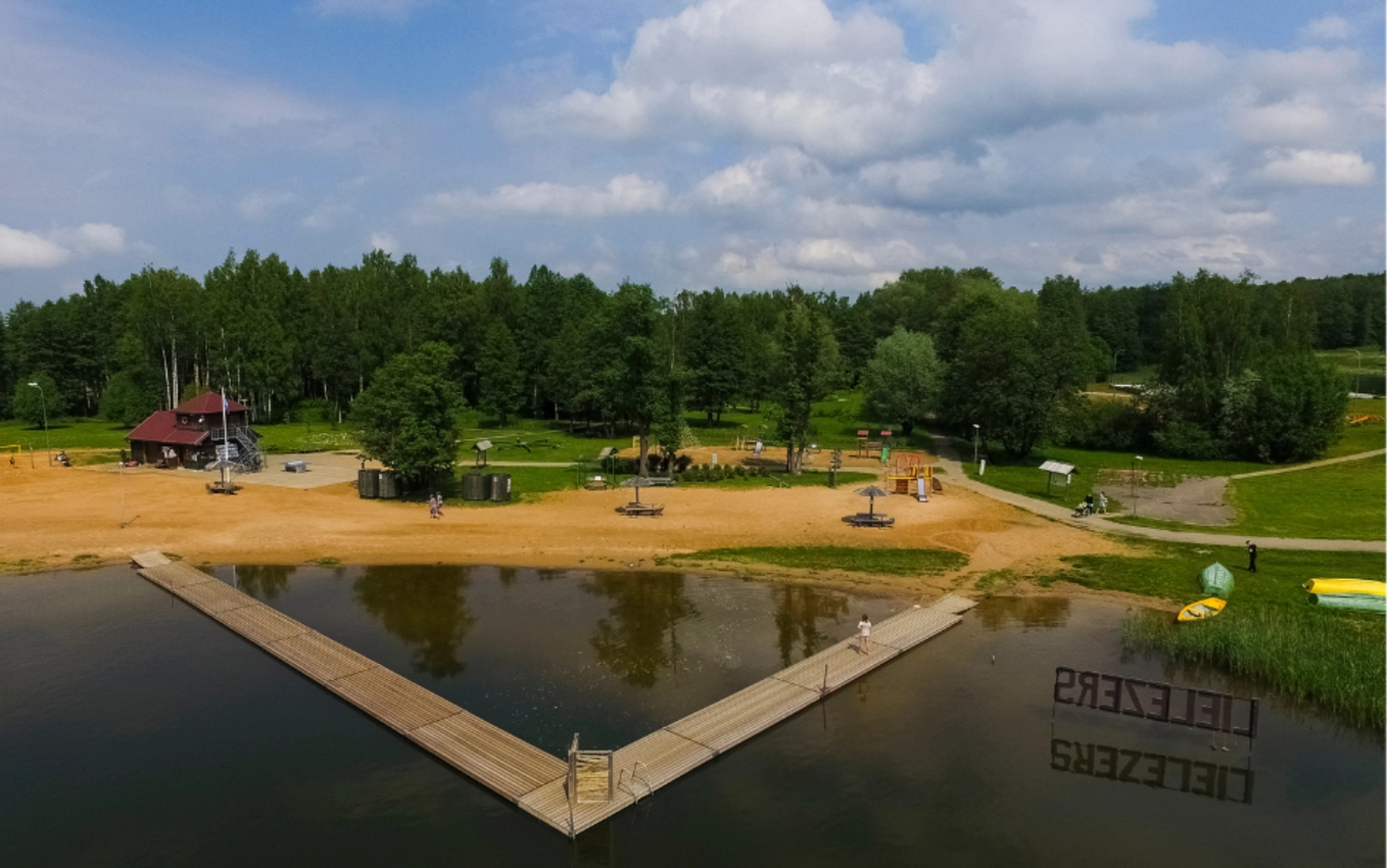 Sijaitsee Limbažin Lielezers-järven rannalla – hiekkaranta, leikkikenttä, luontopolku ja urheilukentät. Ennakkovaraus tarvitaan.