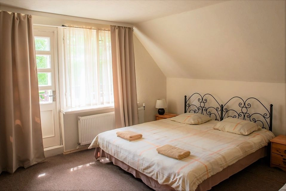 Svečių namuose yra trys aukštai, kuriuose įrengti 7 dviviečiai kambariai (lovos – kartu arba atskirai pagal pageidavimą) ir vienas didelis šeimos kambarys su 4 miegamosiomis vietomis ir kūdikio lovyte.