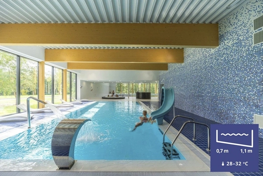 Nedidelis baseinas, skirtas vaikų plaukimo pamokoms 10 x 5 metrų, gylis nuo 0,7 iki 1,1 metro. Vandens temperatūra 28 – 32 ˚C. Baseine yra masažinės srovės ir čiuožykla vaikams.