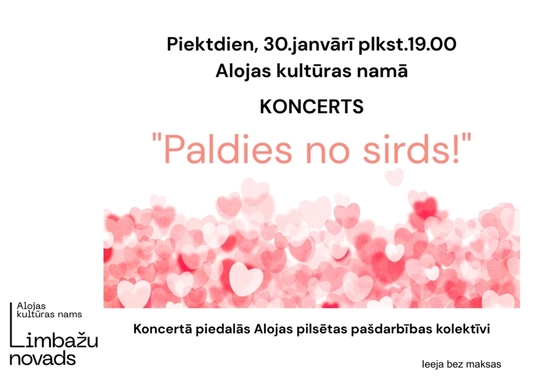 Alojas pilsētas pašdarbības kolektīvu koncerts, kas veltīts akcijas “Paldies no sirds!” pateicību saņēmējiem un 34 gadiem kopš 30. janvārī Alojai tika piešķirts pilsētas statuss.
