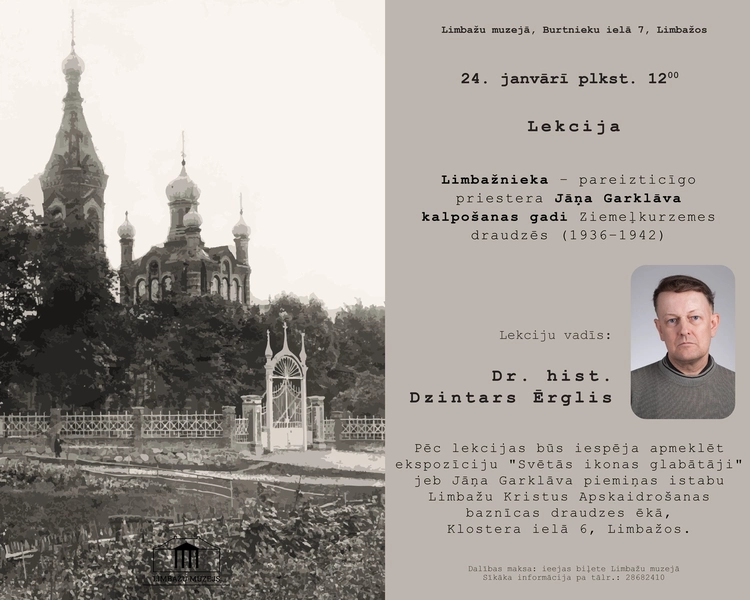 Dzintara Ērgļa lekciju "Limbažnieka – pareizticīgo priestera Jāņa Garklāva kalpošanas gadi Ziemeļkurzemes draudzēs (1936–1942)" Limbažu muzejā