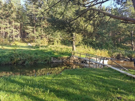 Levähdysalue sijaitsee Svētciemsin kartanon puistossa.