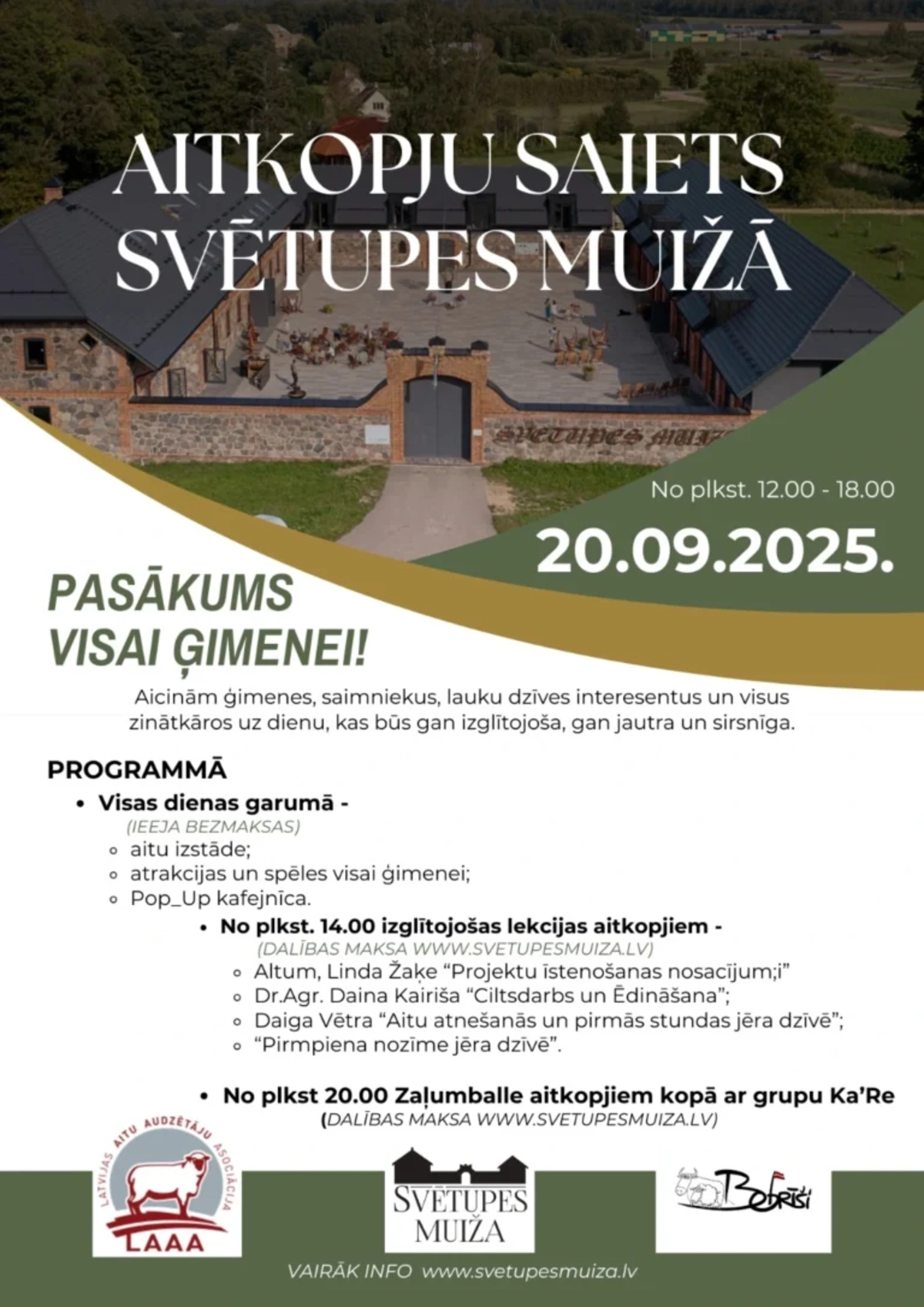 Biļetes iespējams iegādāties: www.svetupesmuiza.lv