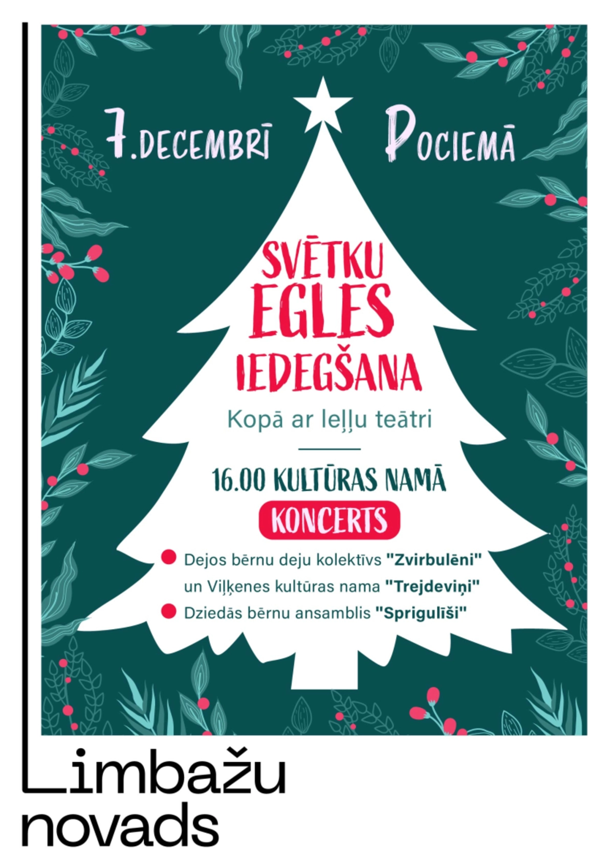 7. decembrī plkst. 16.00 Pociemā notiks Ziemassvētku egles iedegšana kopā ar leļļu teātri.