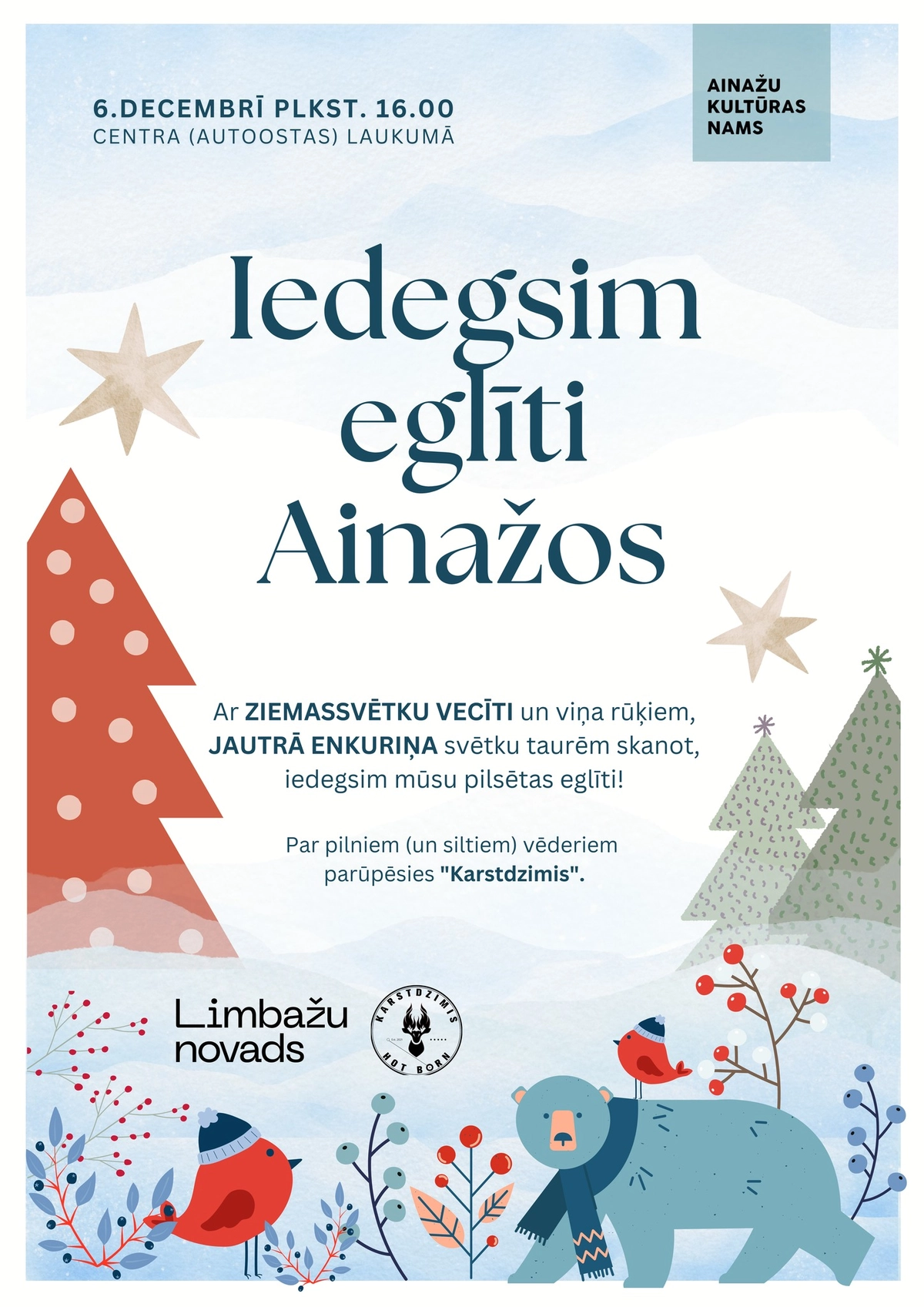 6. decembrī Ainažos tiks iedegta pilsētas Ziemassvētku egle kopā ar Ziemassvētku vecīti un viņa rūķiem.
