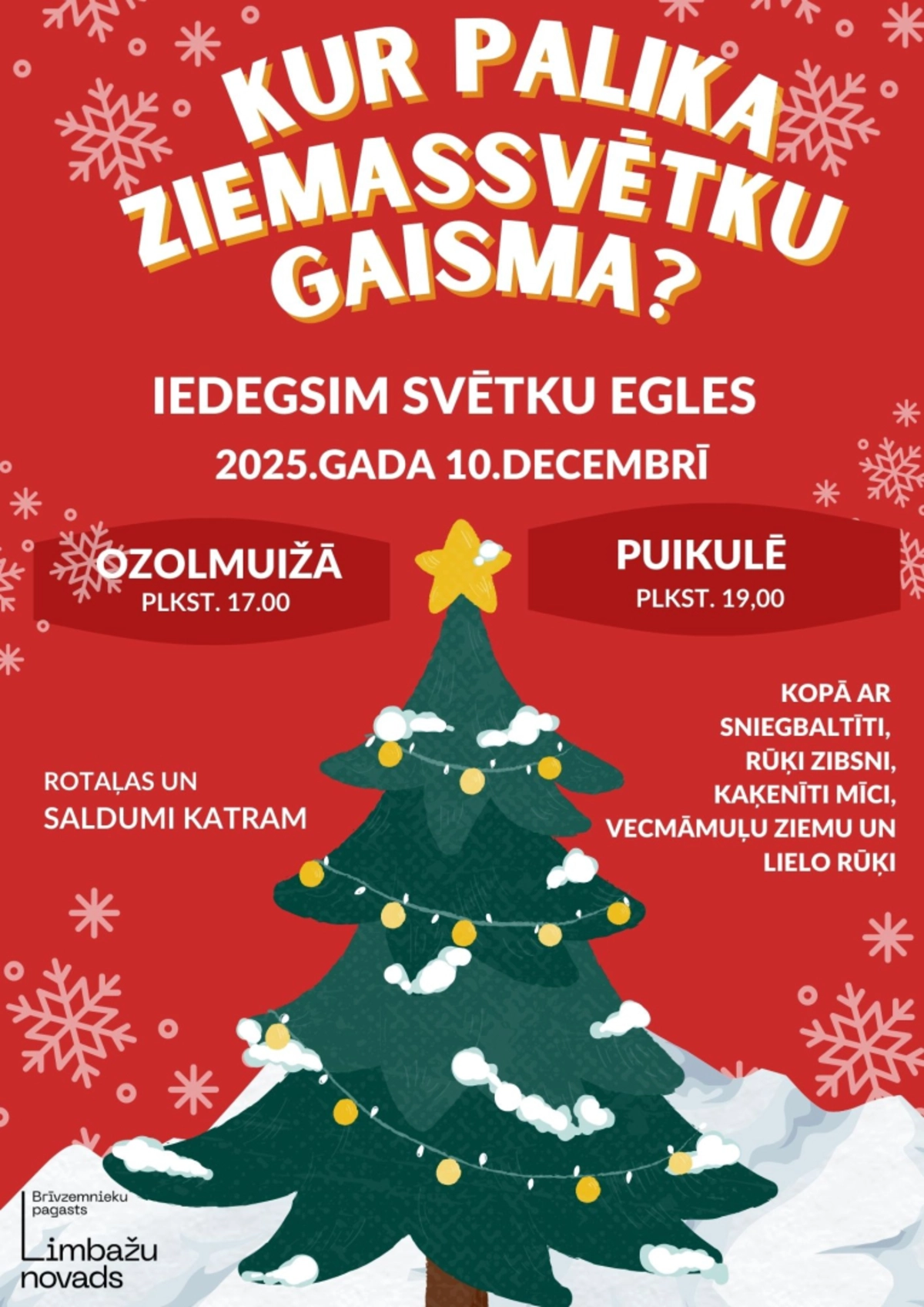 10. decembrī plkst. 17.00 Ozolmuižā un plkst. 19.00 Puikulē tiks iedegtas svētku eglītes, ieskandinot Ziemassvētku gaidīšanas laiku ar gaismiņām, svētku noskaņu un sirsnīgu kopā būšanas prieku.