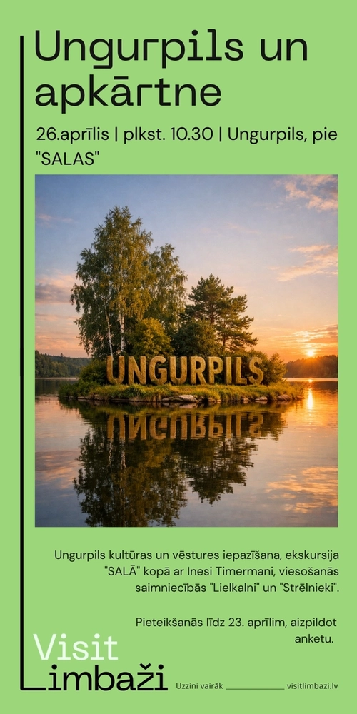 Ar pārgājienu Ungurpilī 26. aprīlī turpināsies aktīvās atpūtas cikls Limbažu novadā. Kopā ar Inesi Timermani pārgājiena dalībnieki viesosies “SALĀ”, apskatīs Ungurpili un viesosies vietējās saimniecībās.